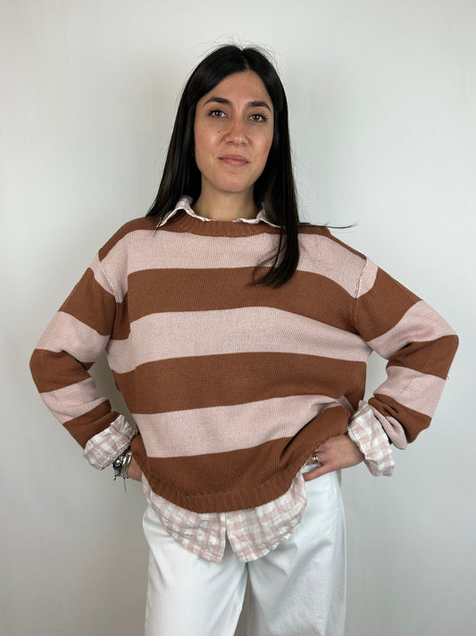 MAGLIONCINO RIGHE ROSA|MARRONE COTONE