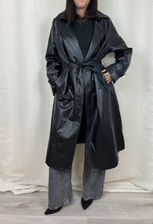 In offertaTRENCH NERO ECOPELLE INVECCHIATA