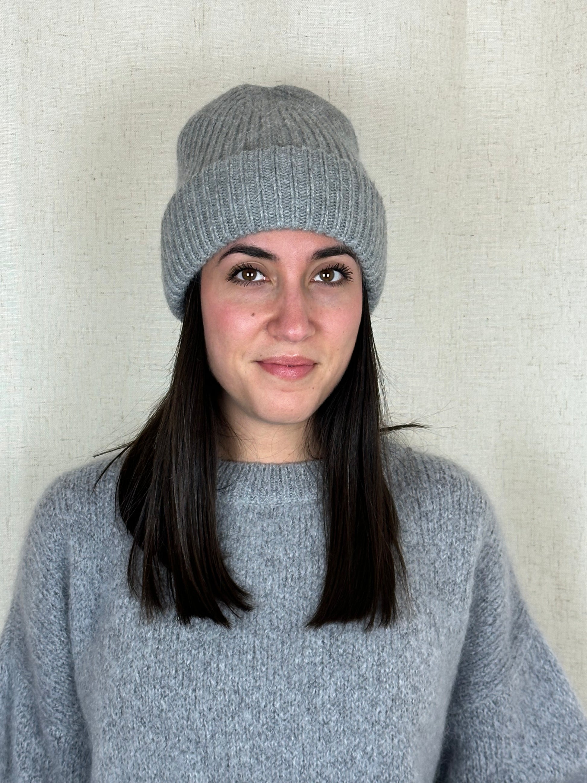 berretto tinta unita, taglia unica, 50% viscosa 40% angora 10% cashmere, colore grigio.