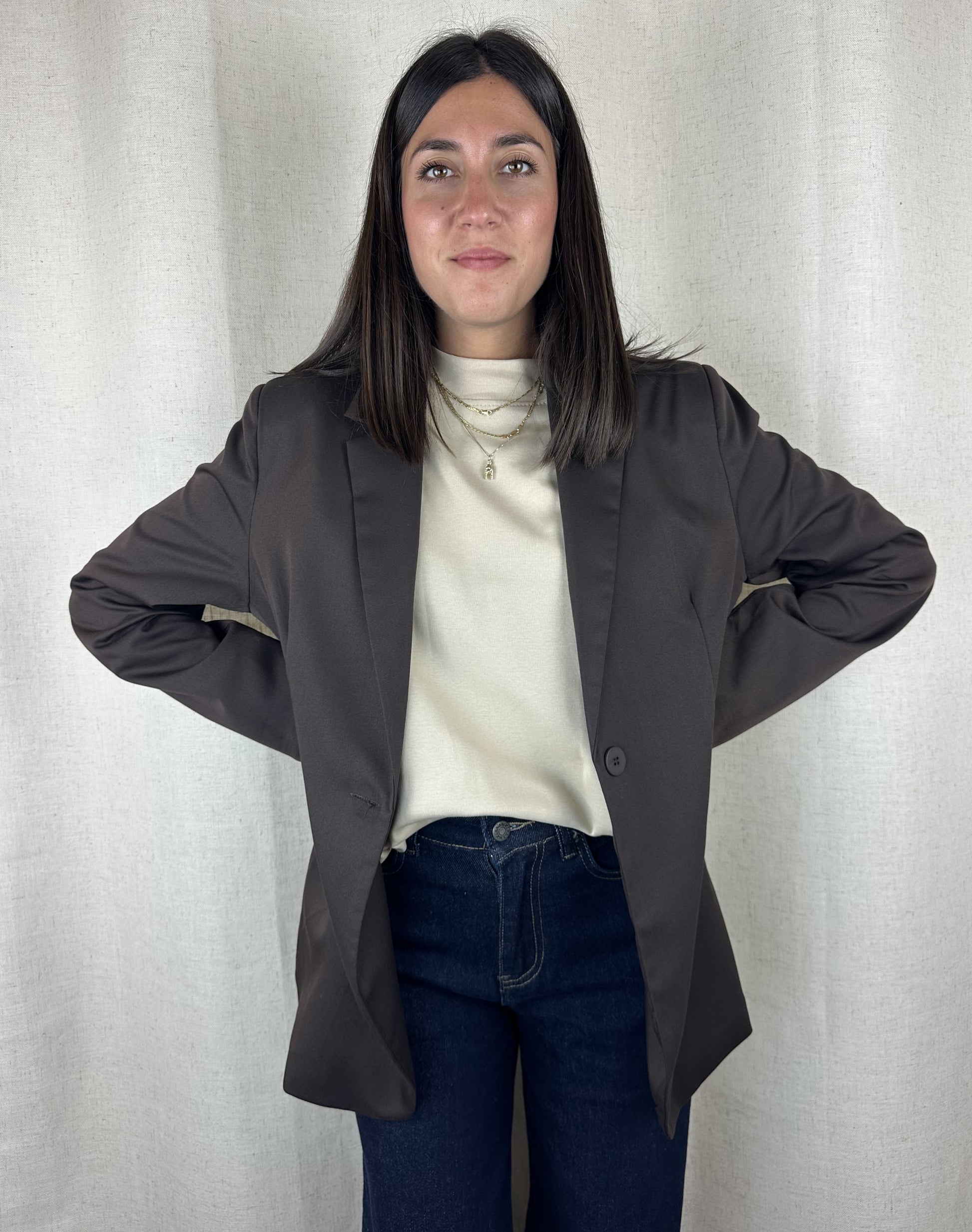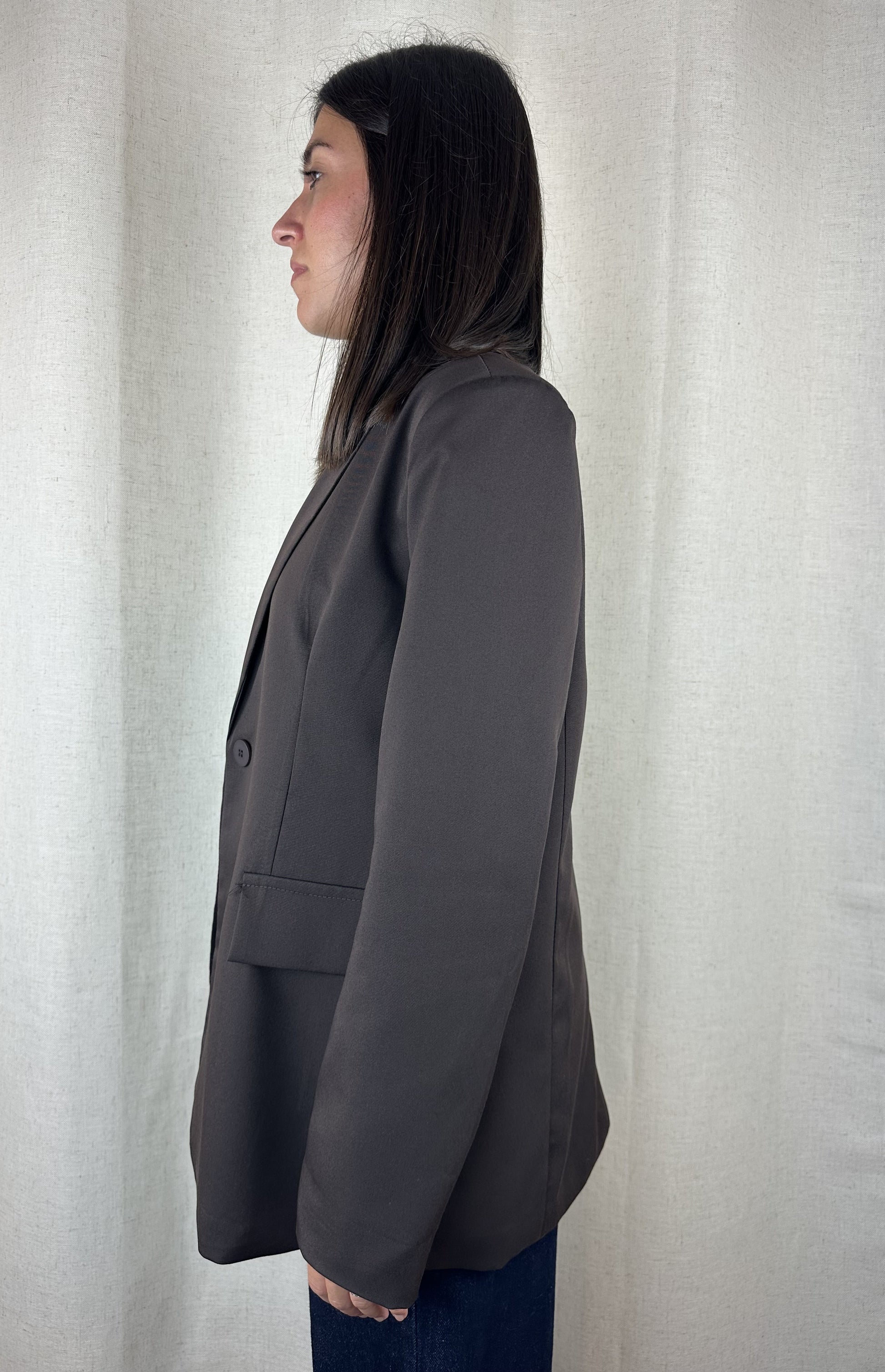 Blazer marrone, taglio giacca maschile un pò oversize (no sfiancato).