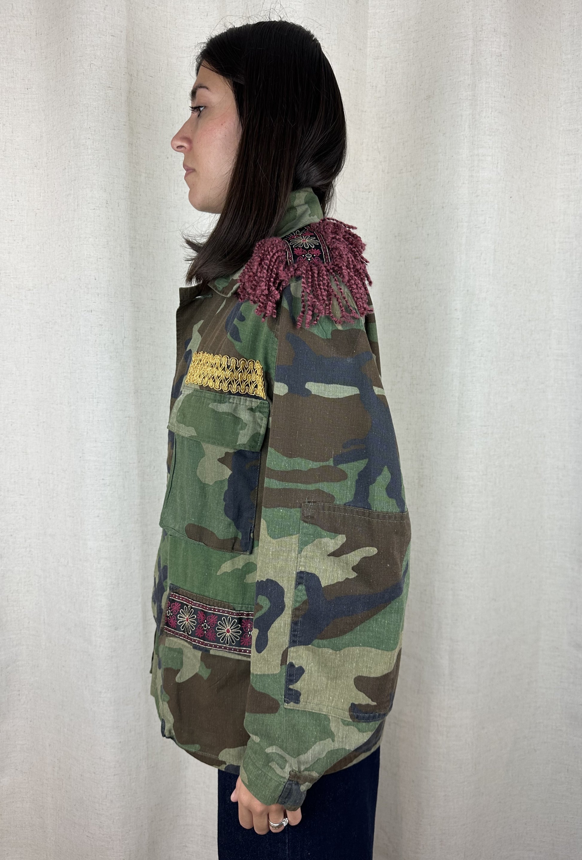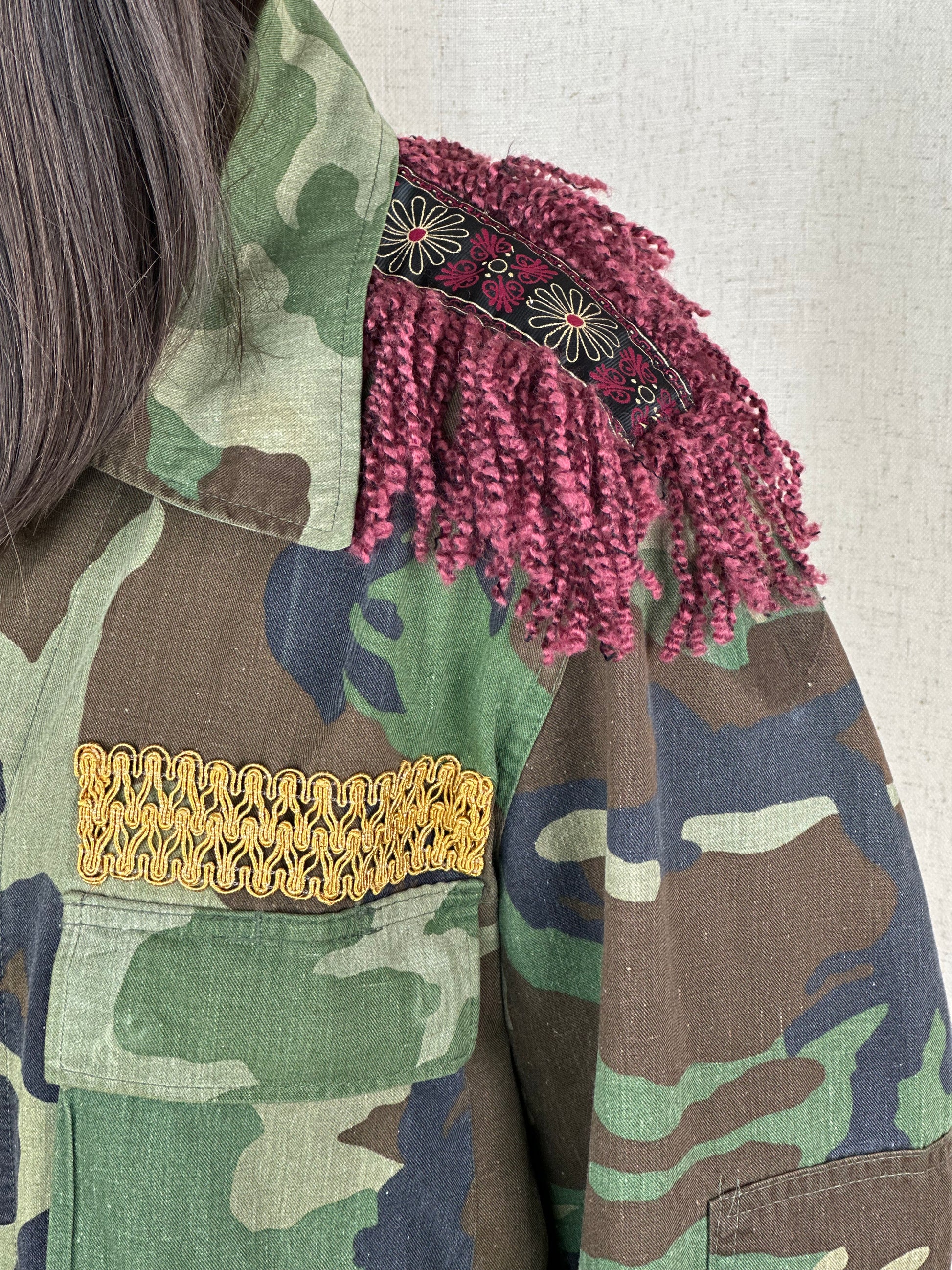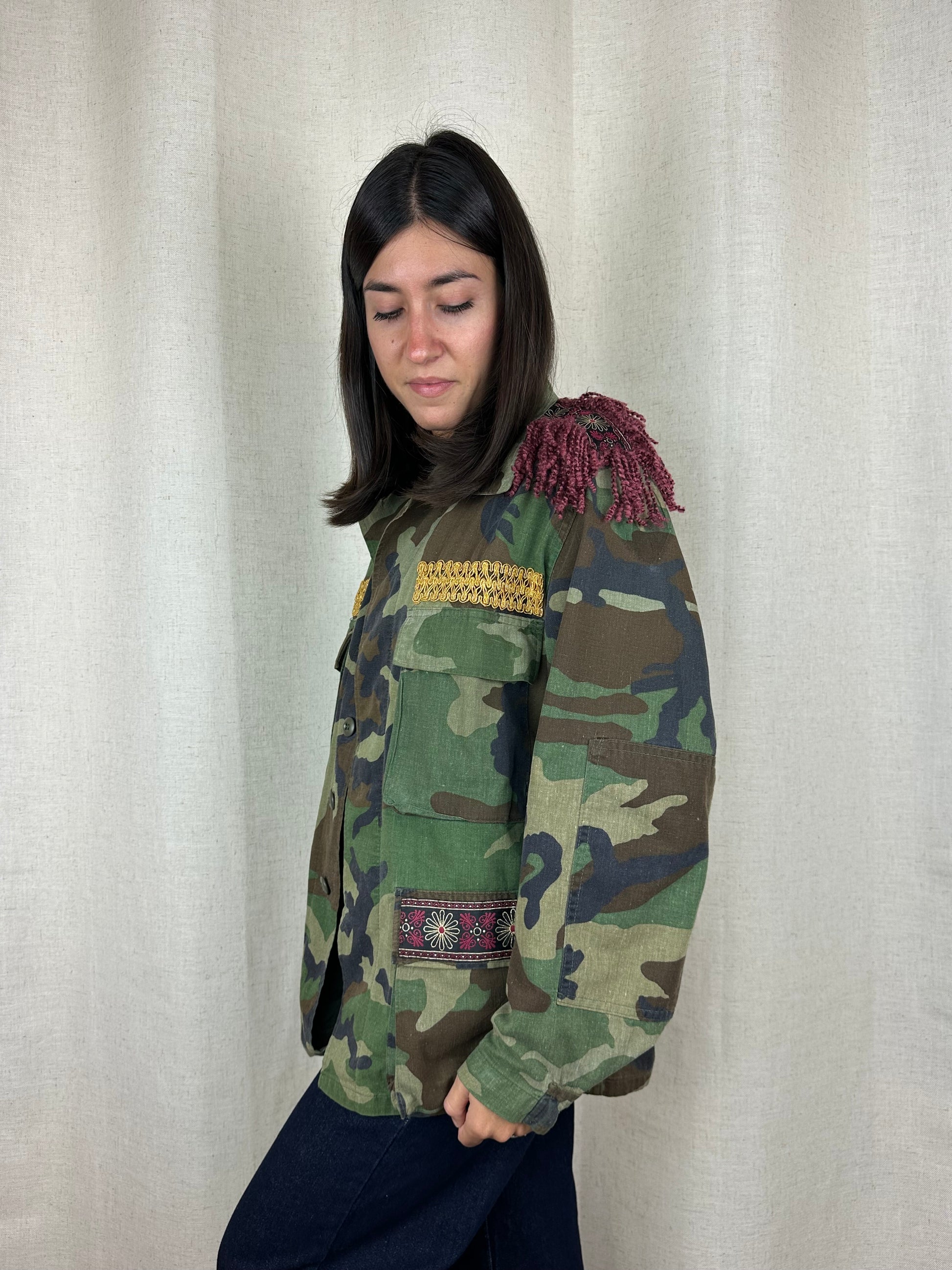Questa camicia è un modello vintage ed è un pezzo unico customizzato da me, ogni dettaglio è stato pensato accuratamente e cucito interamente a mano. Ideale da utilizzare anche come giacca. Chiusura con bottoni.