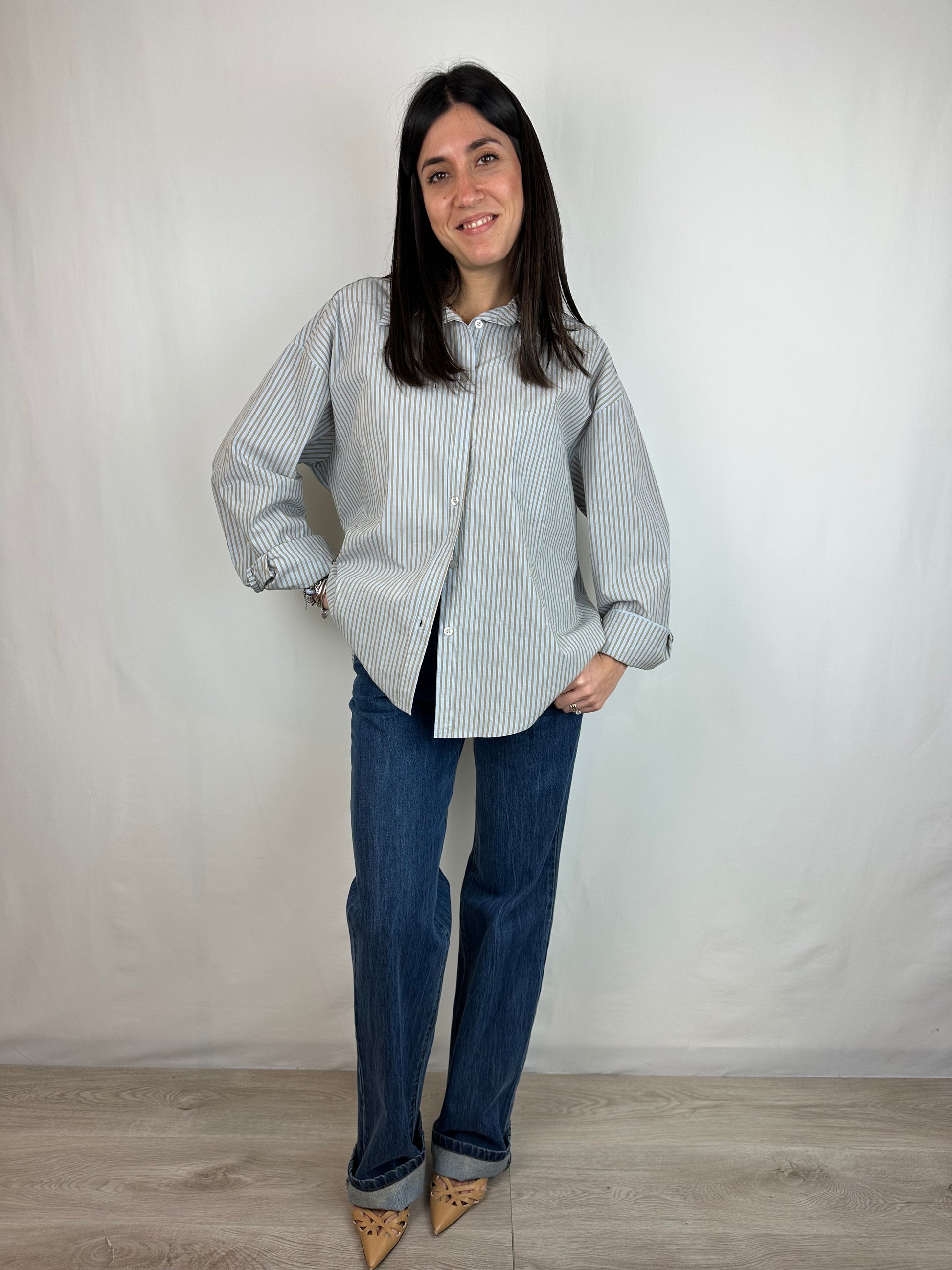 CAMICIA RIGHE AZZURRO|NOCCIOLA