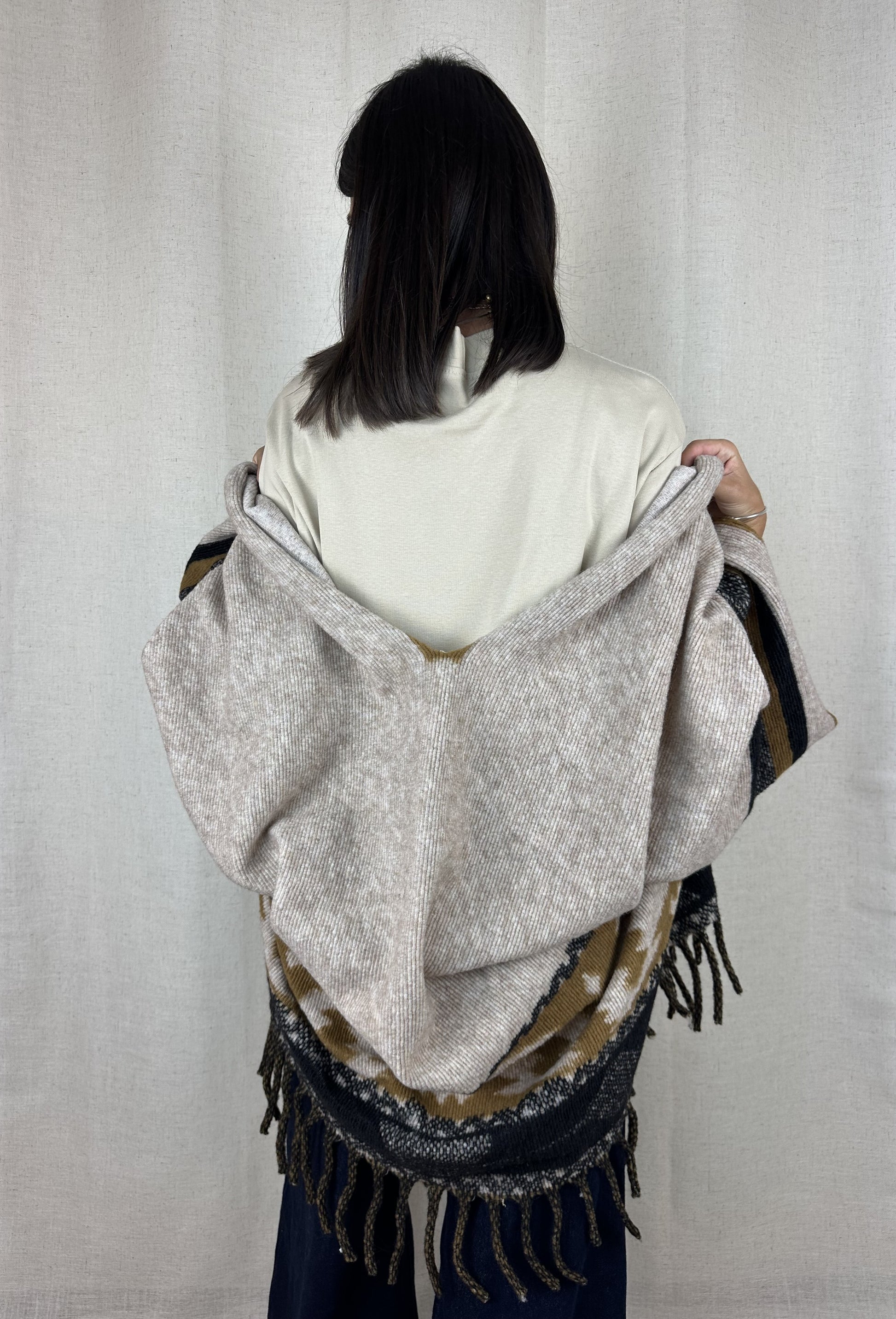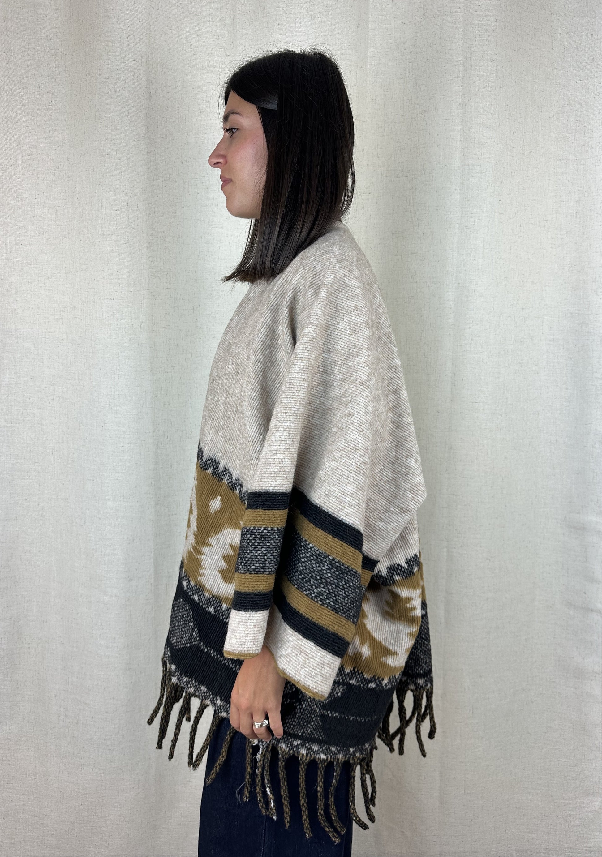 Cardigan con frange, ideale da utilizzare anche come capospalla. 70% poliestere 30% lana.