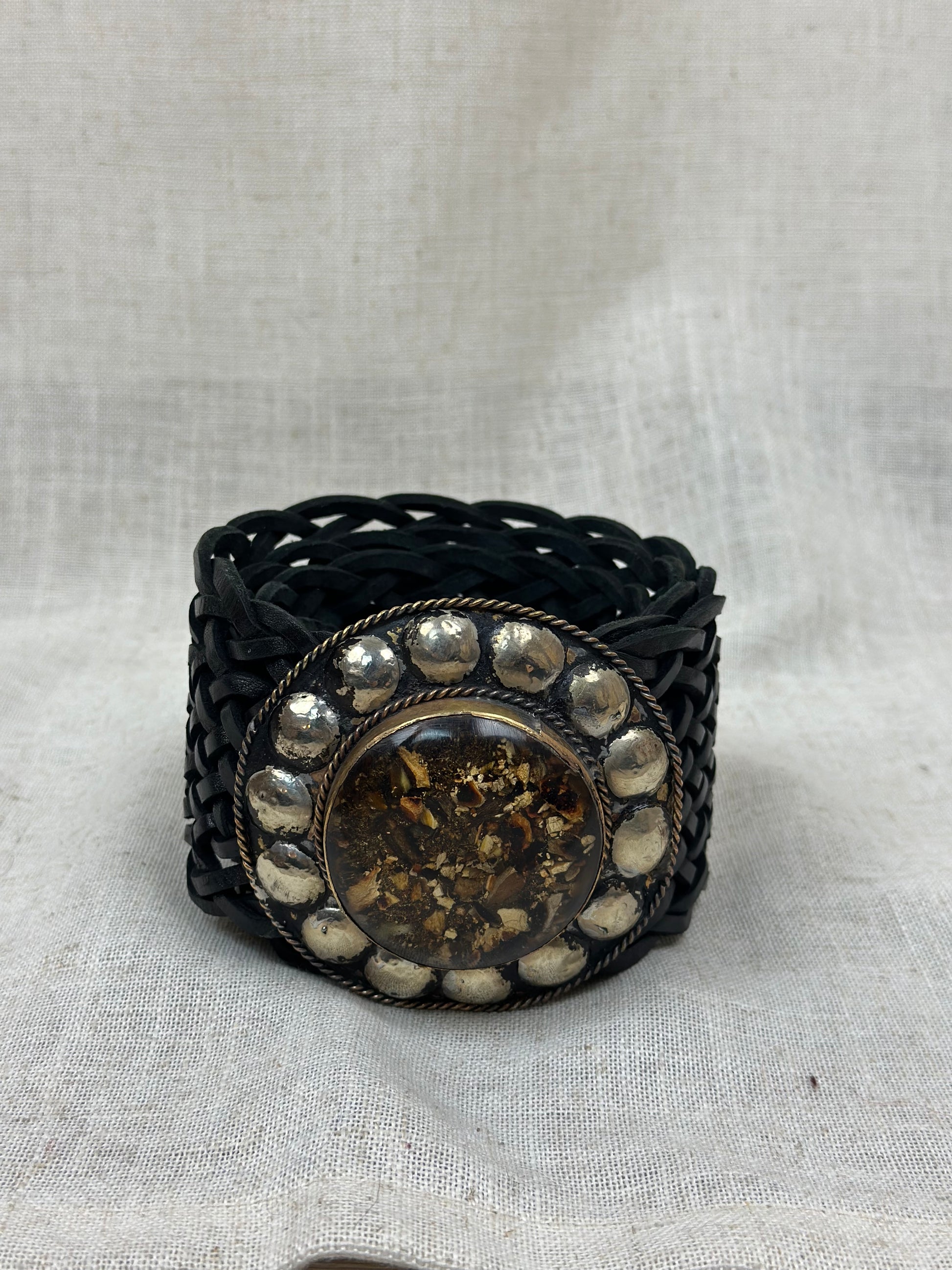 La trama è tutta intrecciata con grossa fibbia, altezza 8 cm lunghezza 113 cm.