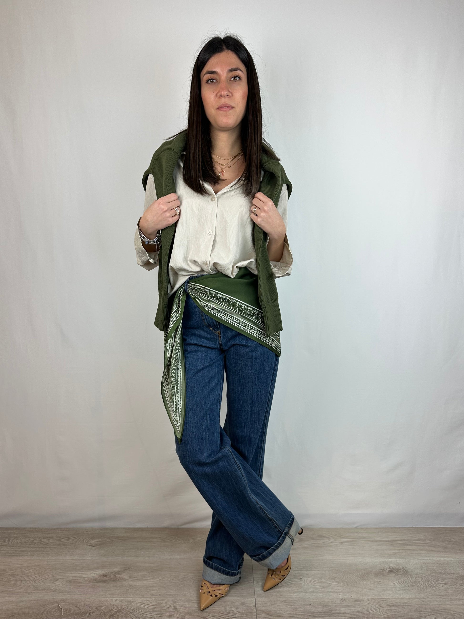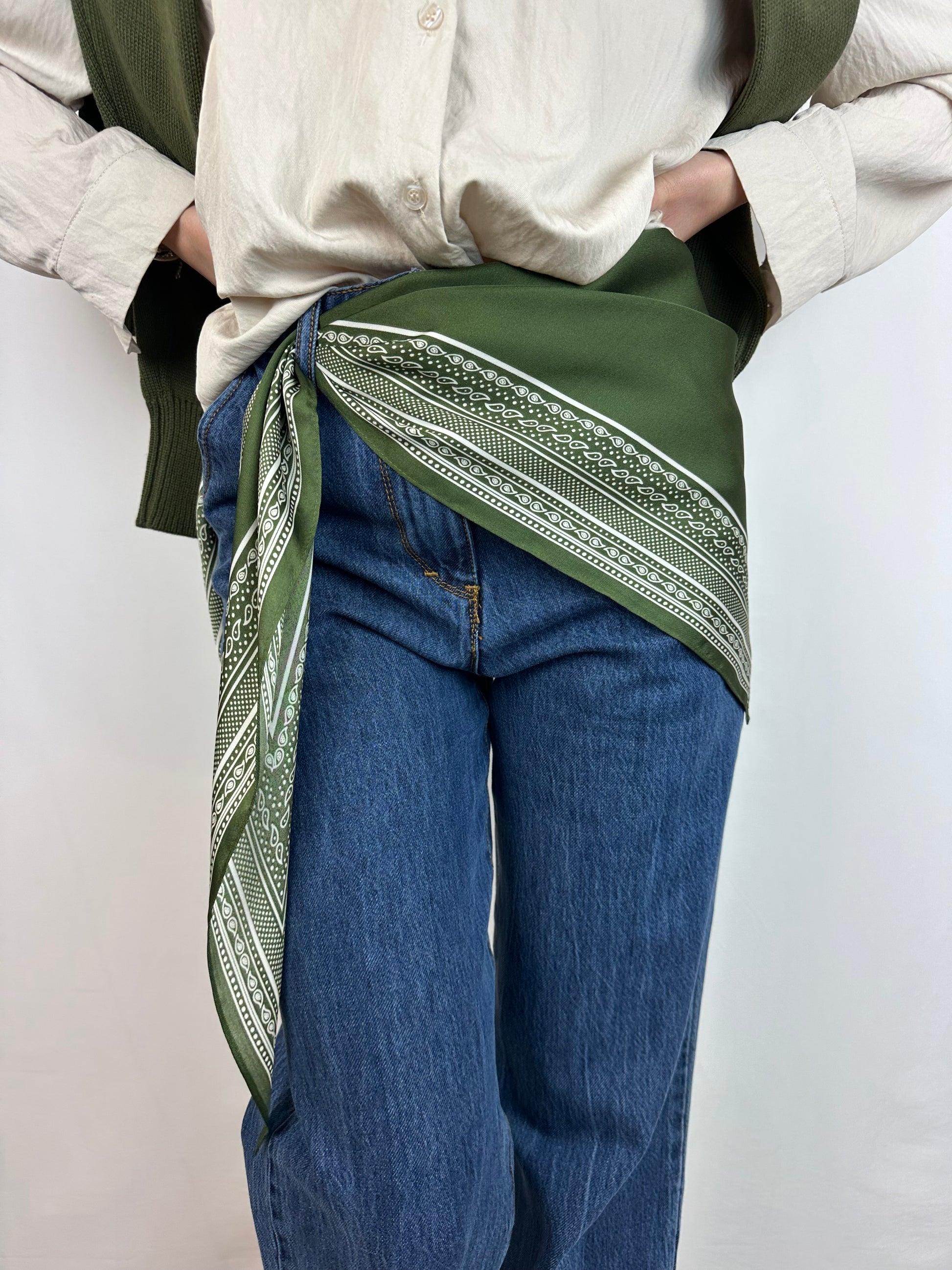 Ideale da utilizzare come foulard, ma anche come accessorio in testa (tipo bandana), oppure come vero e proprio dettaglio per completare al meglio un outfit.