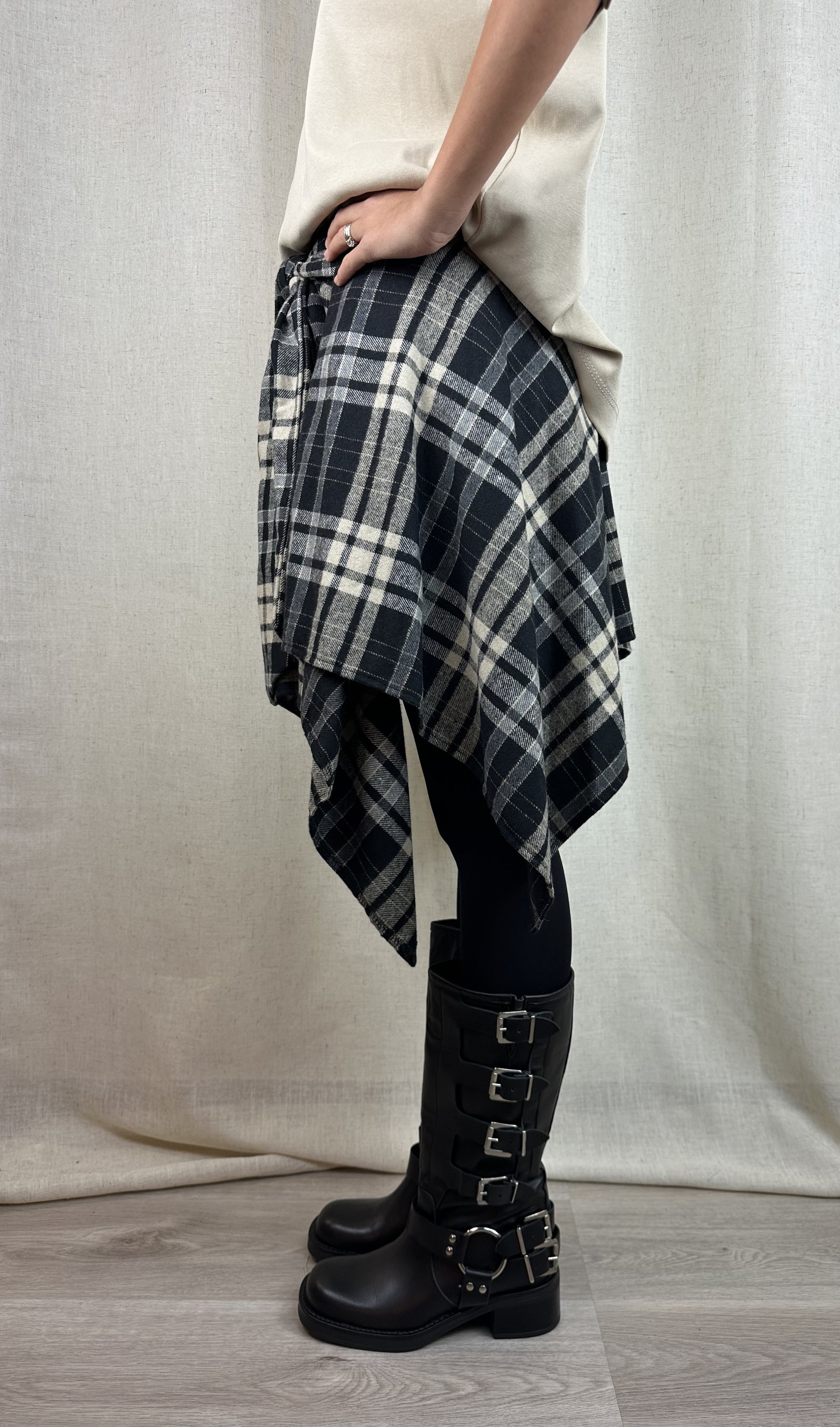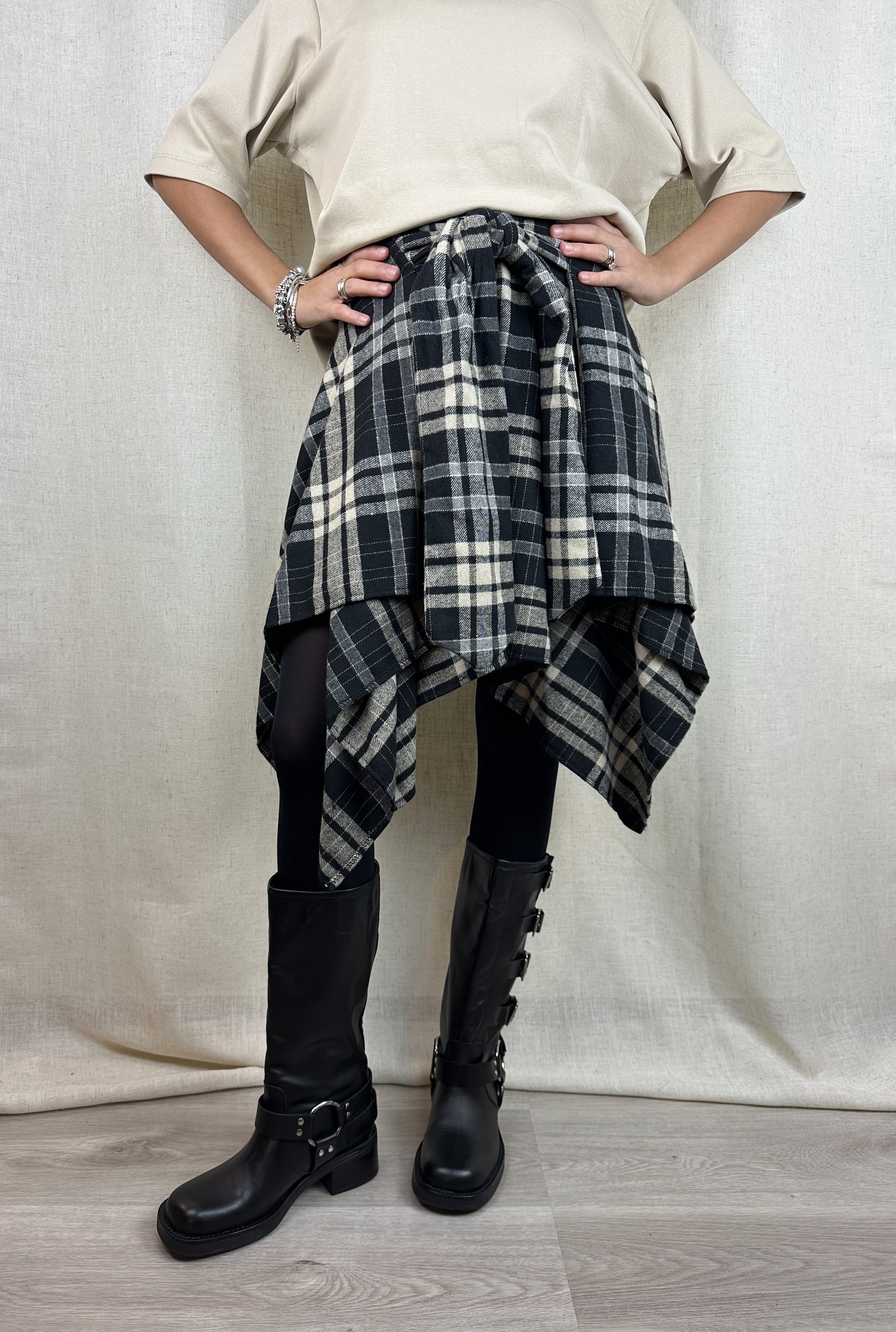 Gonna con elastico in vita effetto camicia legata in vita, 100% cotone tipo flanella.