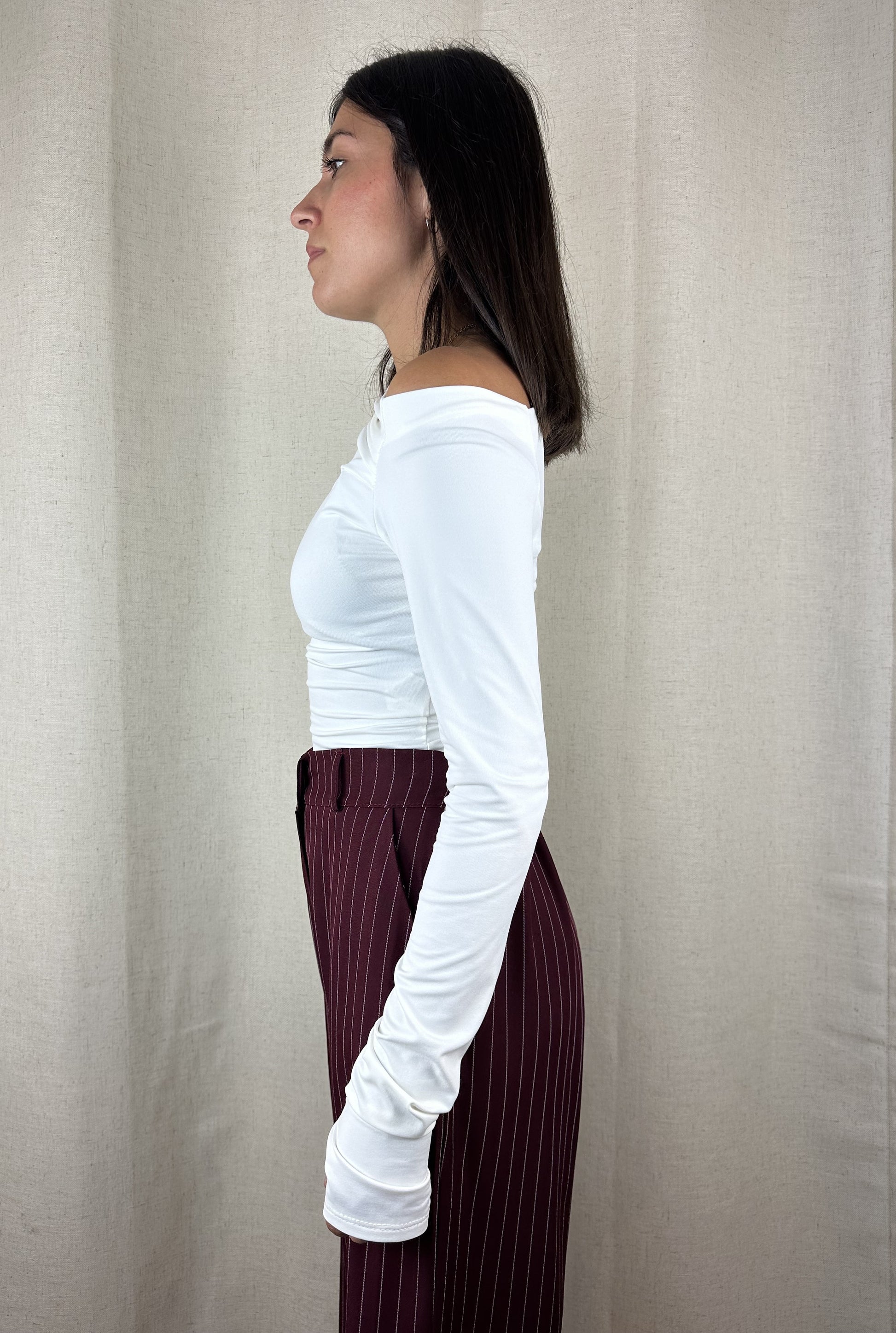 MAGLIA BIANCA ASIMMENTRICA POLSINI