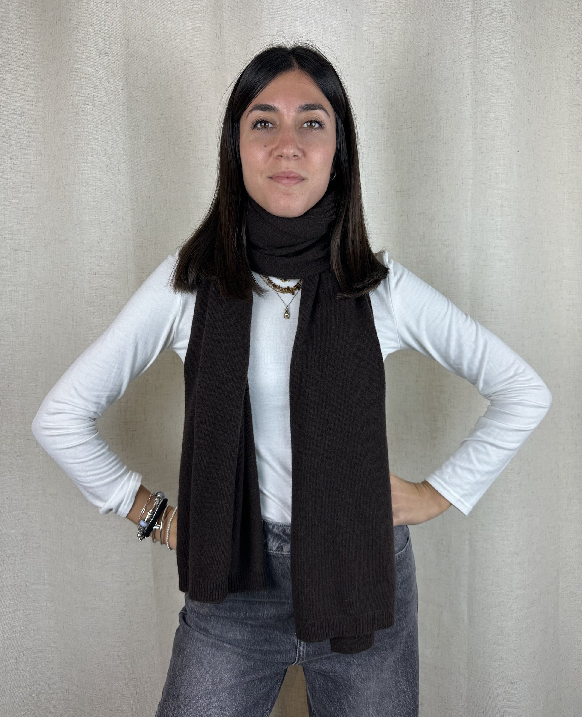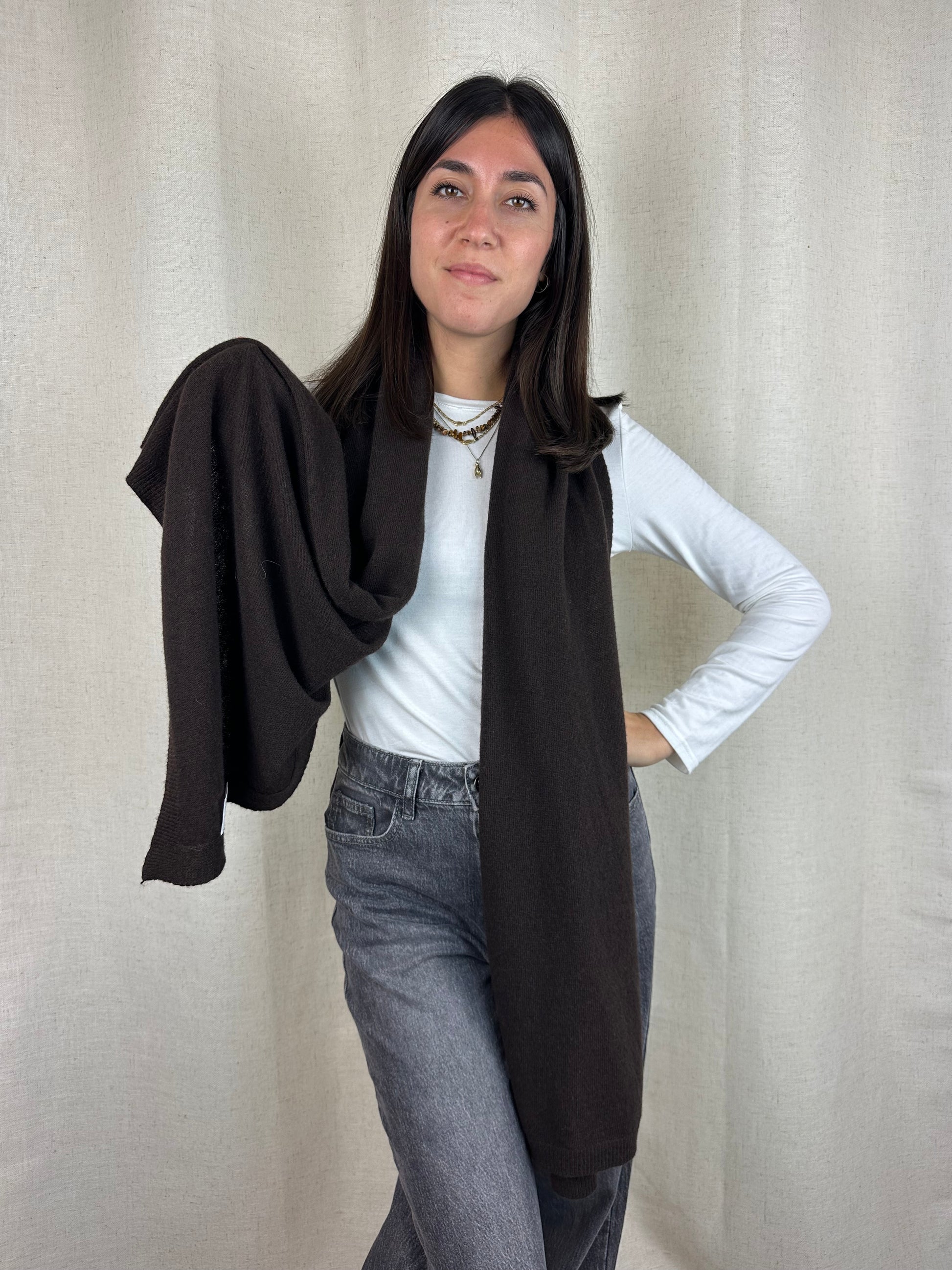 Sciarpa in lana marrone unisex, 40% lana 30% viscosa 20% poliestere 10% cashmere.