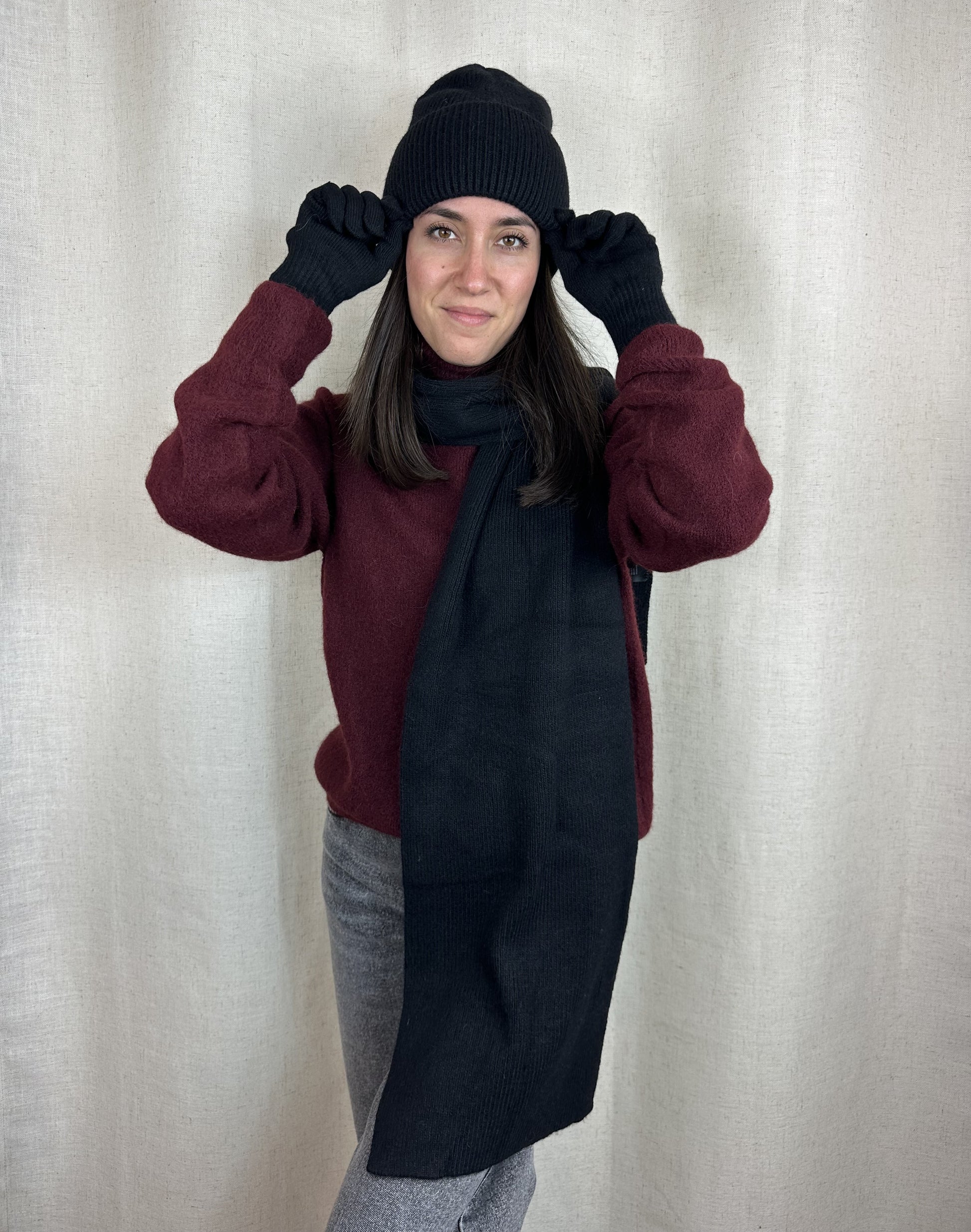 Set composto da berretto, sciarpa e guanti, 80% viscosa 10% lana 10% angora.