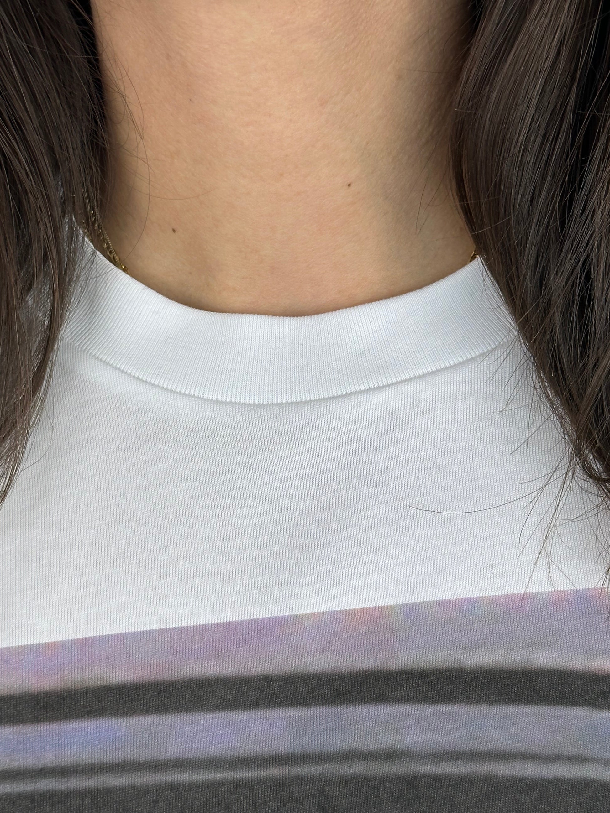 Colore bianco con stampa digitale di una scena iconica della serie tv di sex and the city.