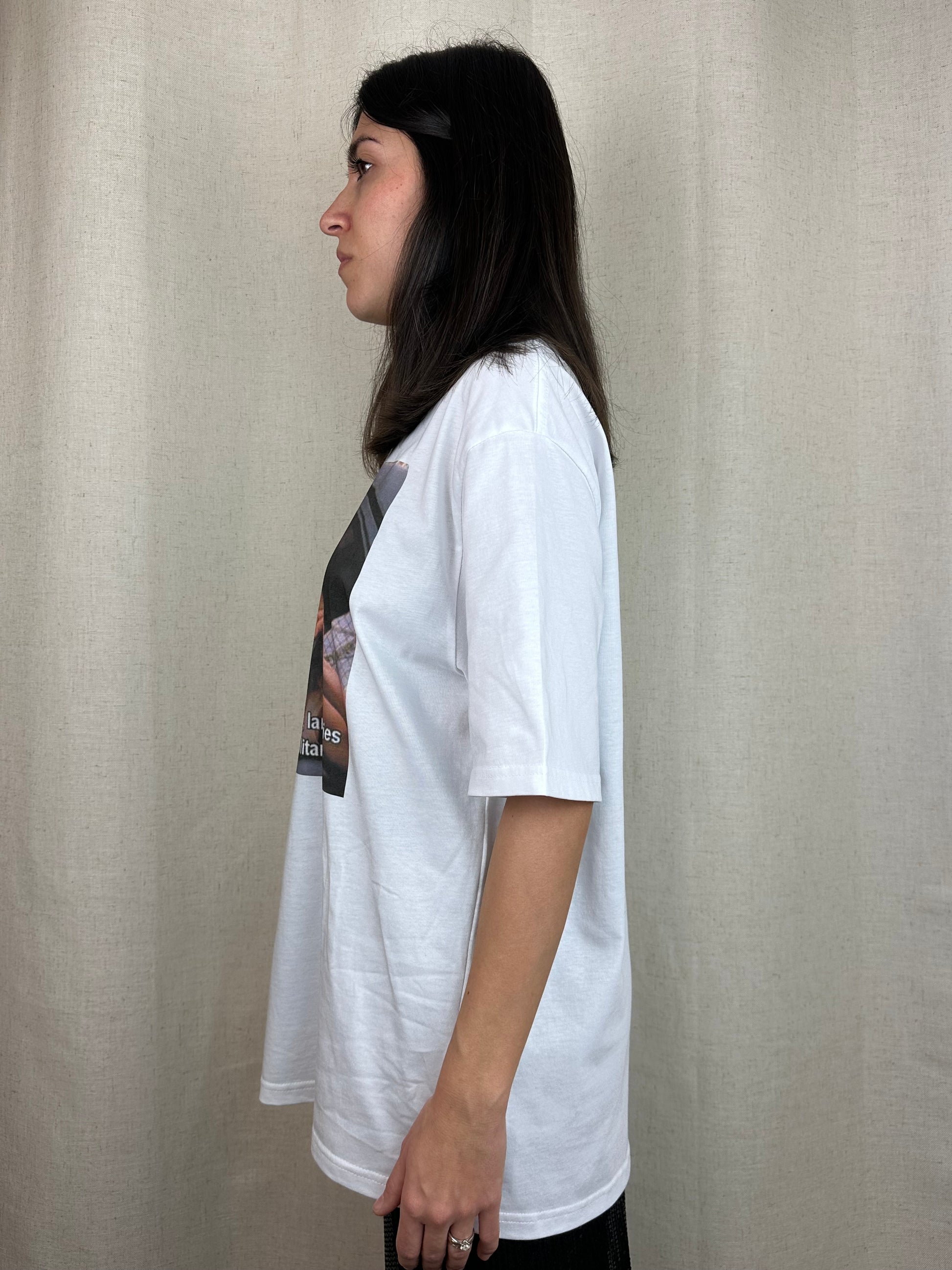 T-shirt 100% cotone organico riciclato, vestibilità morbida, taglia unica.