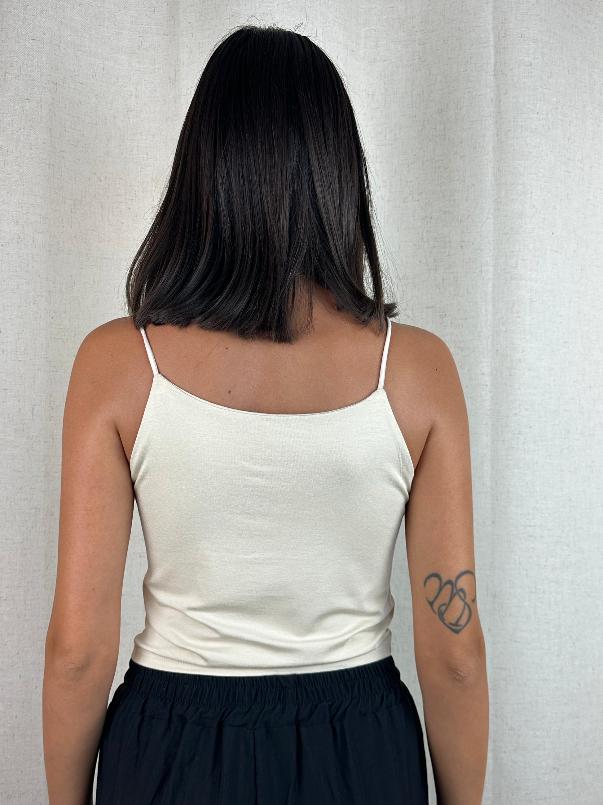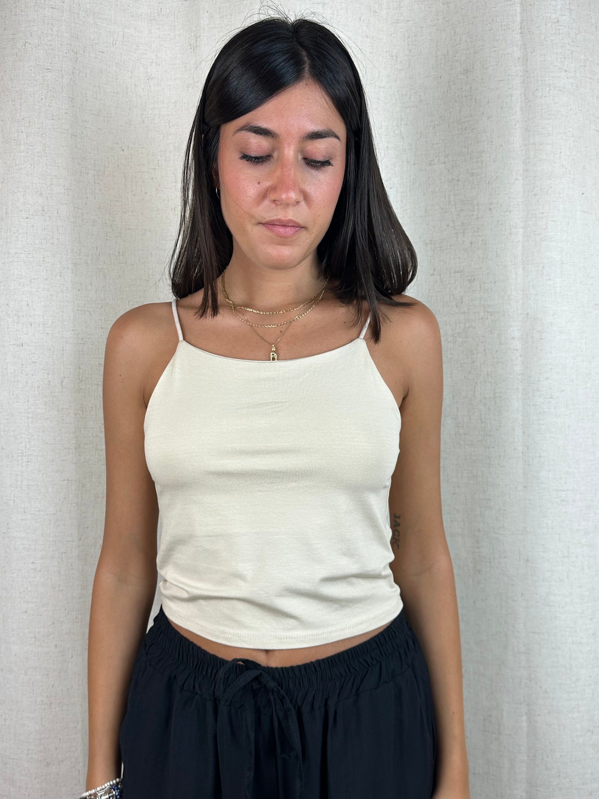 Top corto con spalline sottili color nude, 95% viscosa 5% elastan.