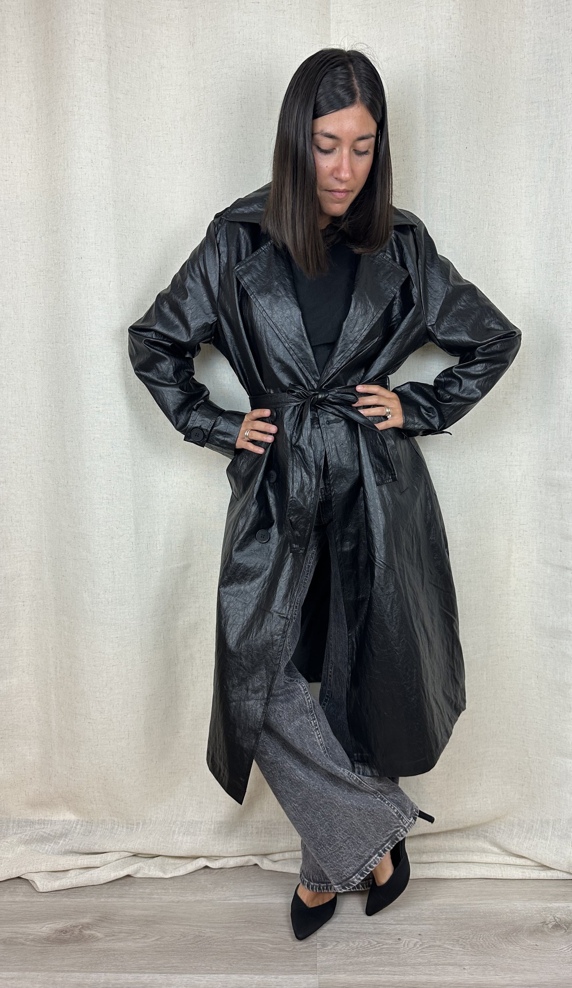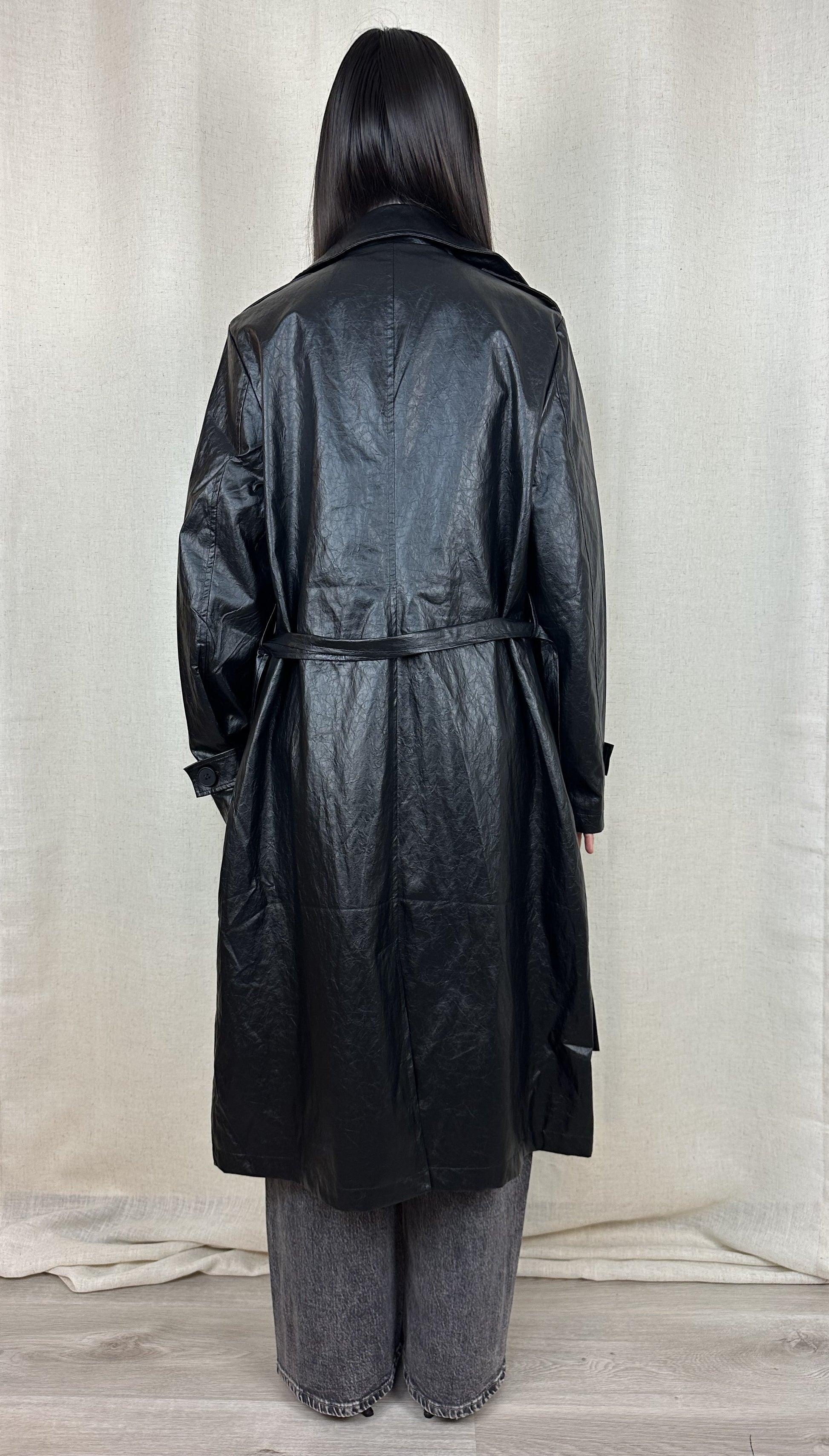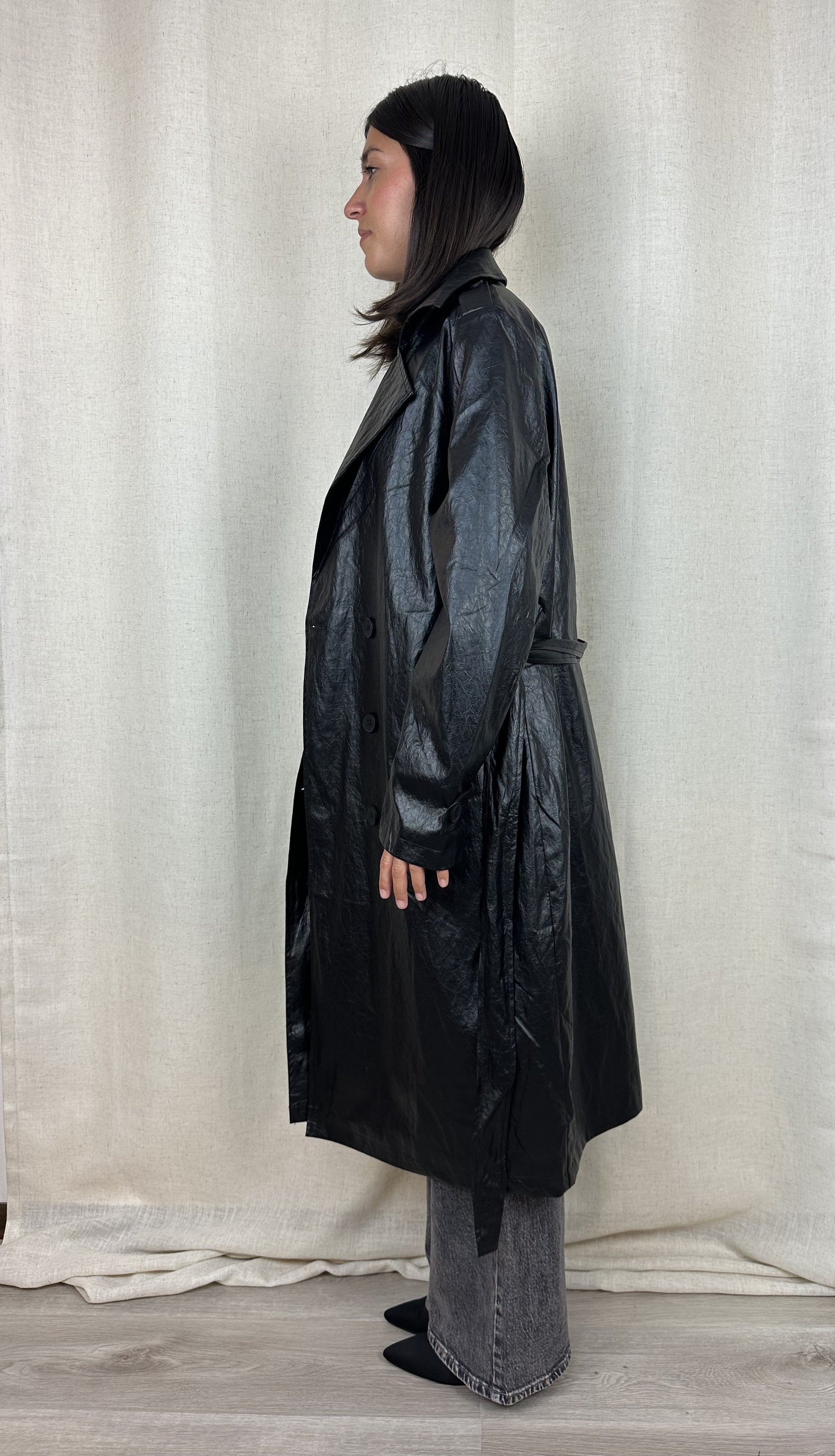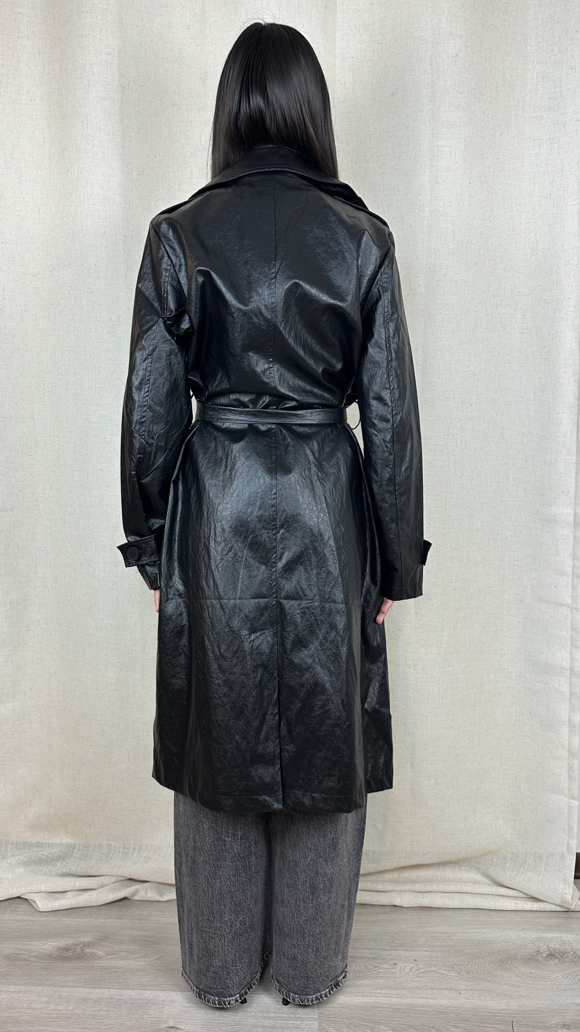 TRENCH NERO ECOPELLE INVECCHIATA